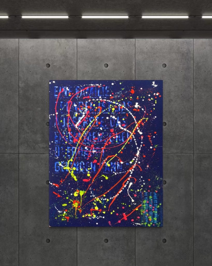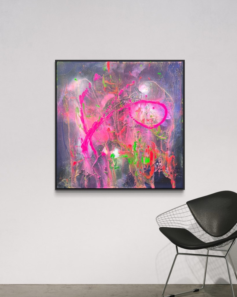 2022 | Acrylic on copper sprayed black Canvas | 100 x 100 cm | black wood frame |