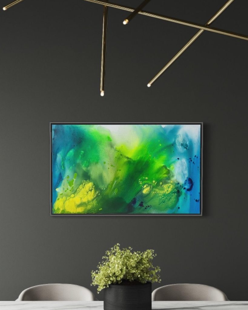 2023 | Acrylic on natural cotton Canvas | 160 x 180 cm | green wood frame |