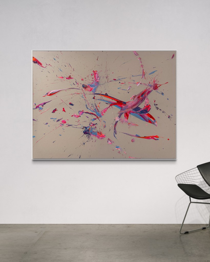 Acrylic on rose sprayed Canvas | 110 x 140 cm | Sold
