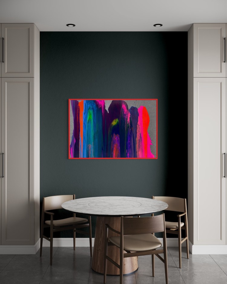 2023 | Acrylic on raw Canvas | 80 x 120 cm | neon red wood frame |